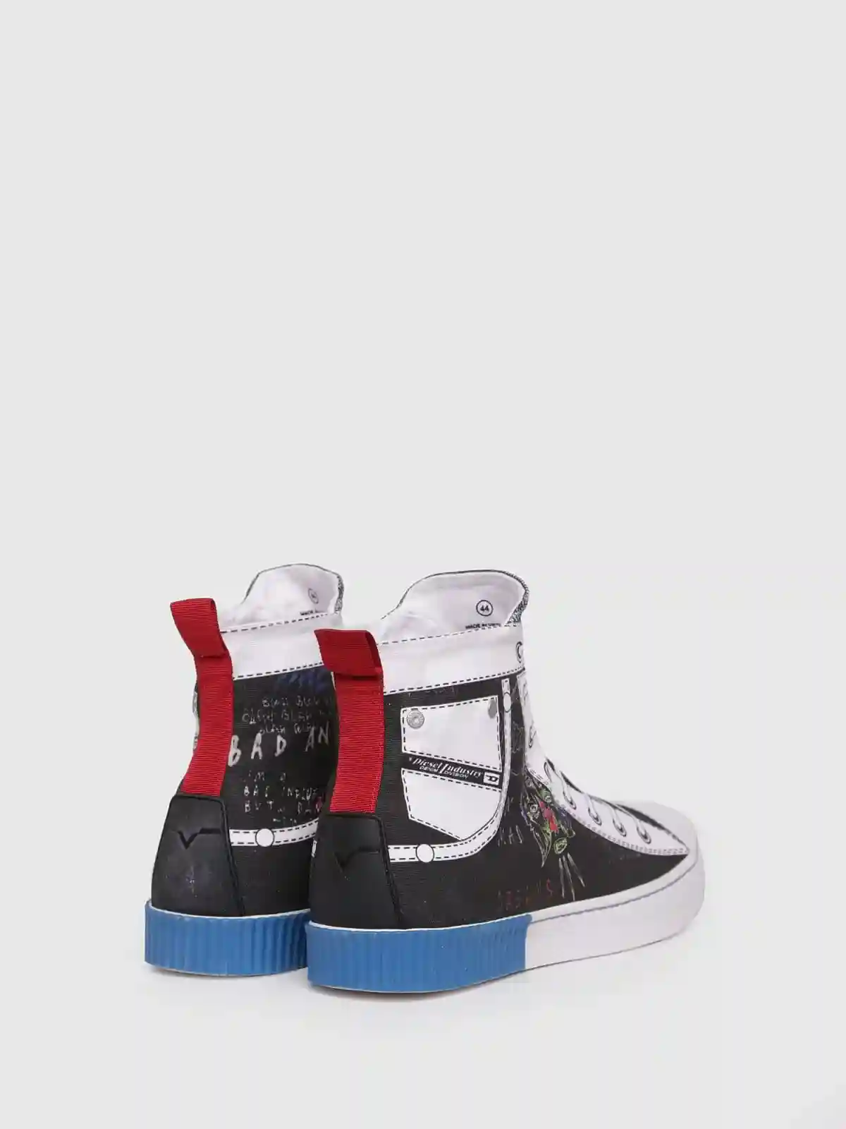 Built from breathable stretch cotton, these slip-on sneakers are crafted to resemble high-top lace-ups. They are adorned with the signature logo pocket print on the side and fasten with a contrasting toggle drawstring at the ankle. The solid rubber sole is detailed with a contrasting ridged band.