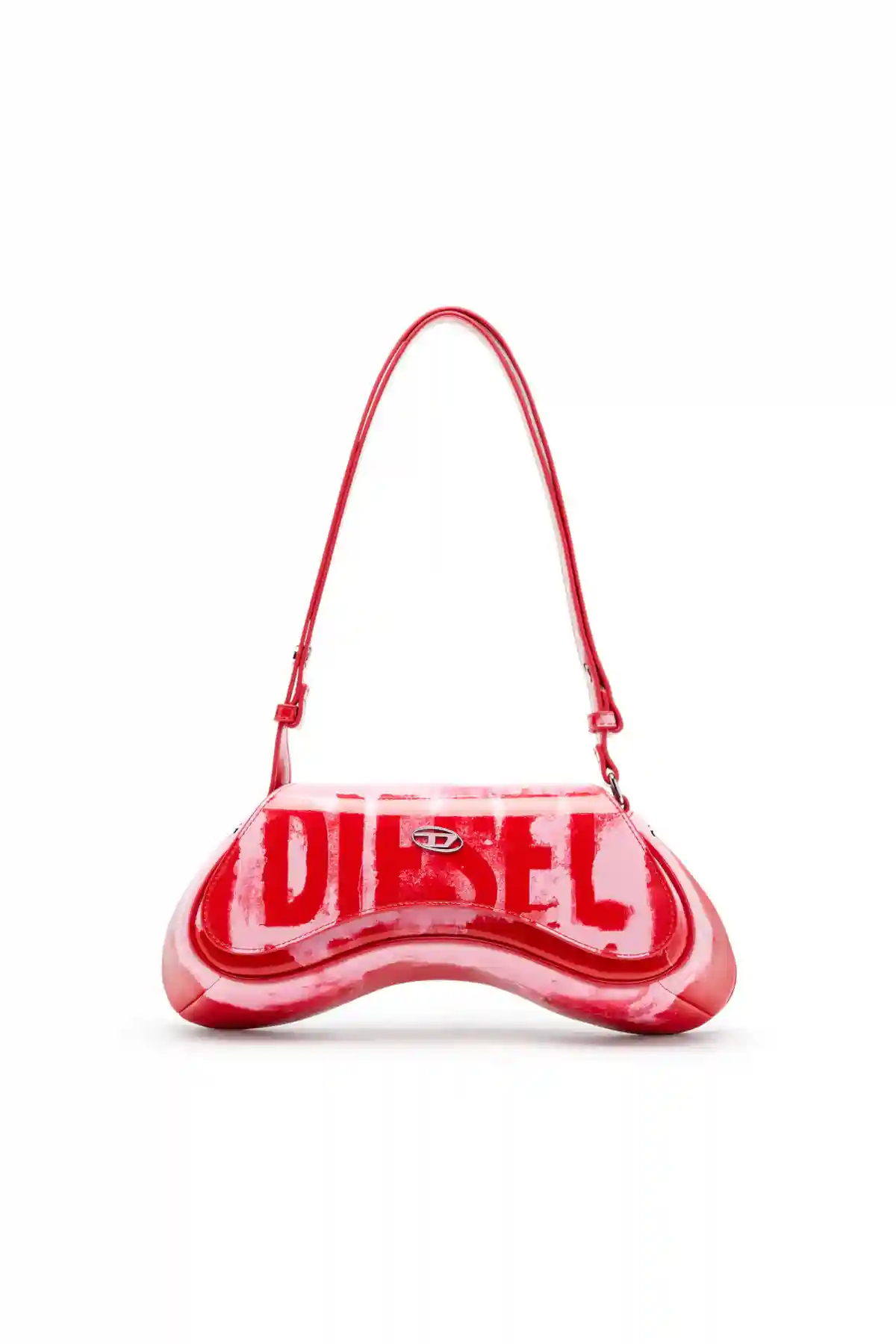 Designed with a sleek and compact crossbody shape, this women's bag features a playful design inspired by gaming controllers. The structured design is printed with a "bleeding" graphic logo in a super shiny finish, and features a lined internal compartment.